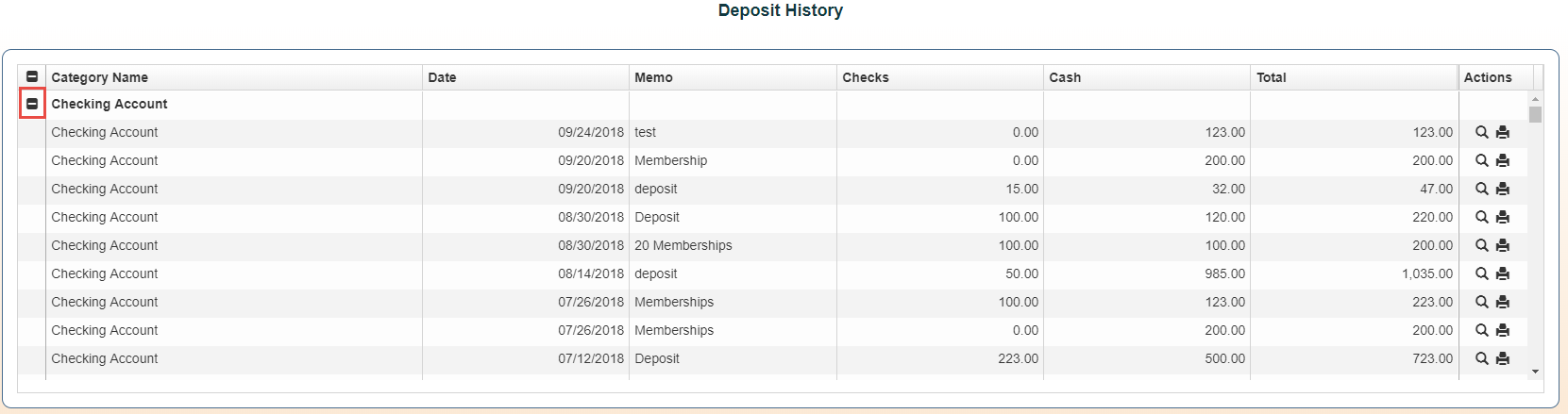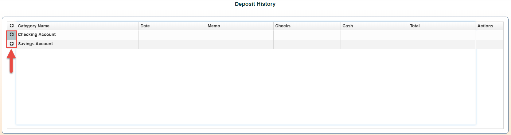 2.Select the bank account that you would like to view the deposits from by clicking on the “+” sign next to the account