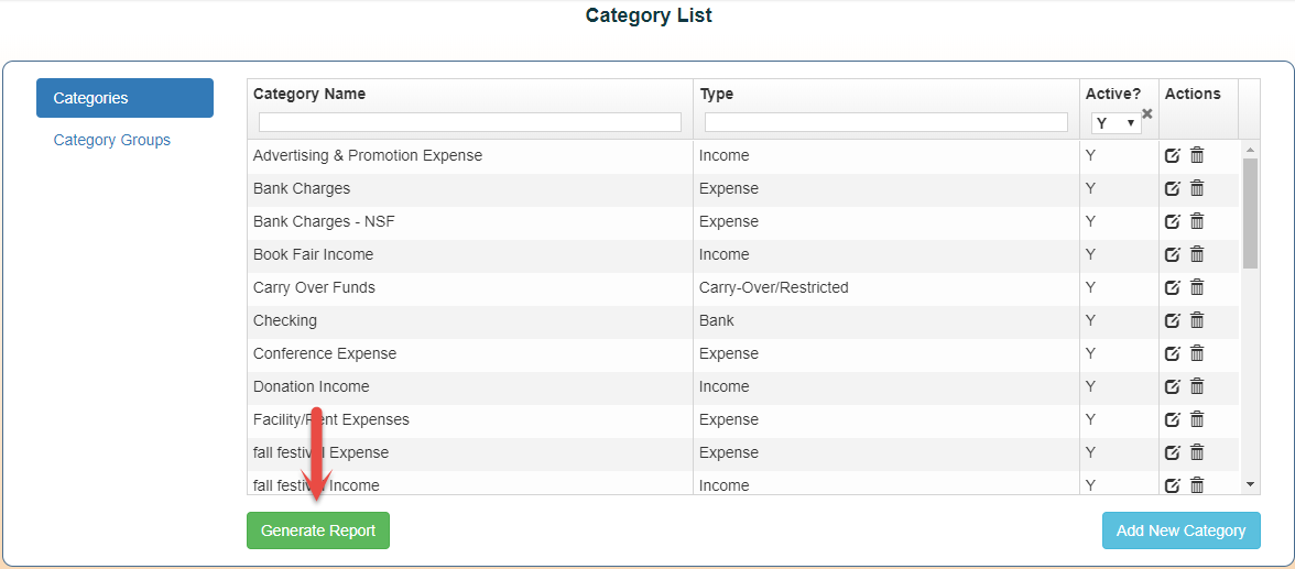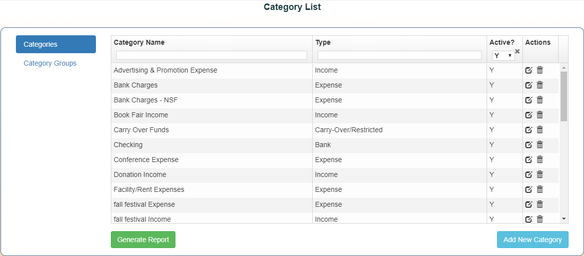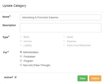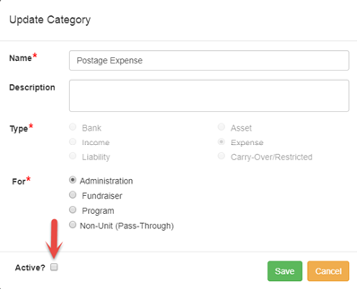 *Note: You cannot remove a category if it has had transactions posted to it, but you can make them inactive.