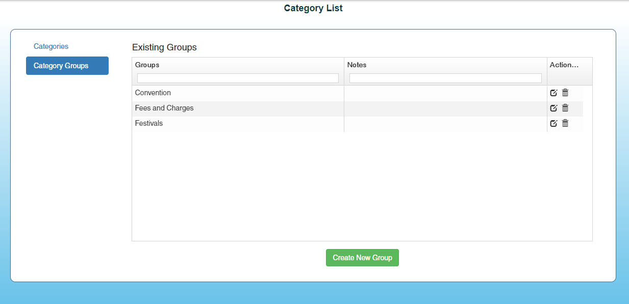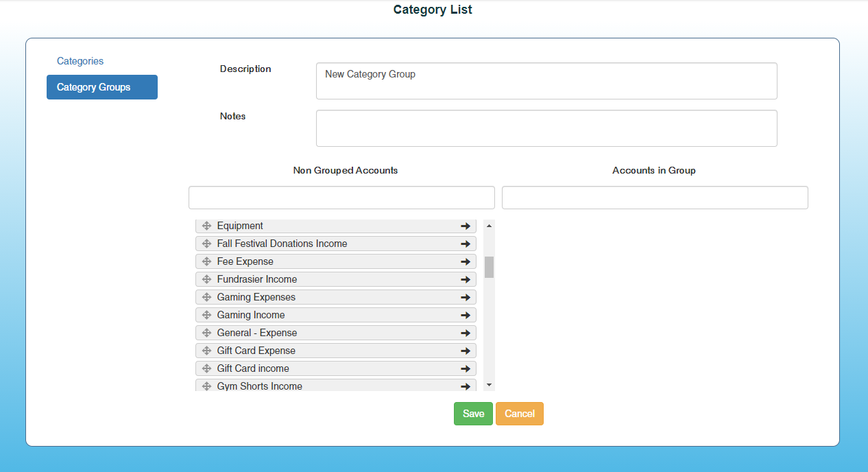 *Note: A single Category can only belong to ONE group at a time. If you need to put a Category in a Different Group that what it currently is in, you will need to remove from the current group before you are able to add it to the new one.