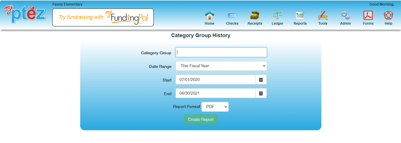 1.Select Reports > Category/Transactions Reports > Category Group Report