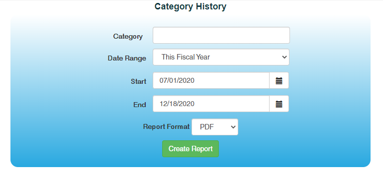 Category History is a detailed report of all transactions that have taken place is a specific category