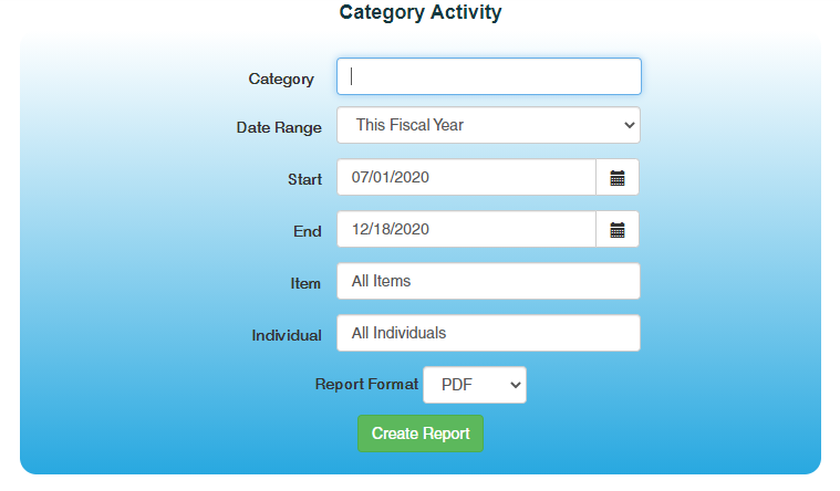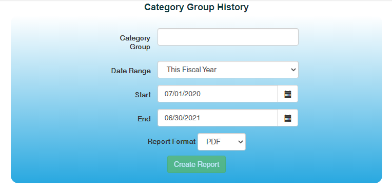 Category History Report shows all activity for a specific category (does not include starting and ending balances)