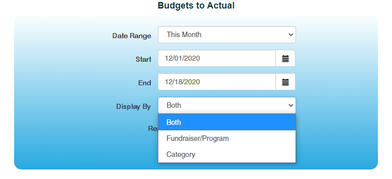 a.Both– will show you totals for Fundraiser/Programs and the Categories associated to each of them.