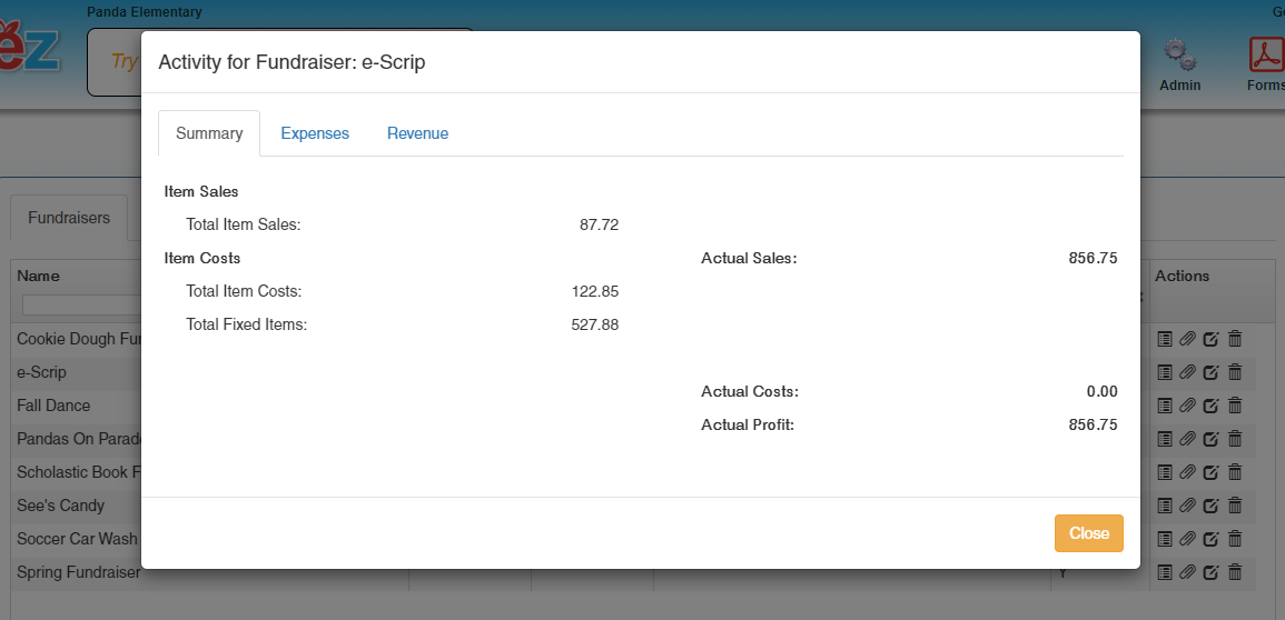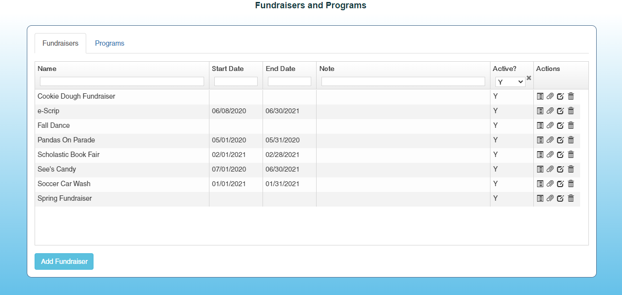 You can check the activity of fundraisers and programs by highlighting them and clicking on the paperclip icon in the Action tools. This is the “Activity Report”. This will show you what transactions have taken place in each fundraiser/program.