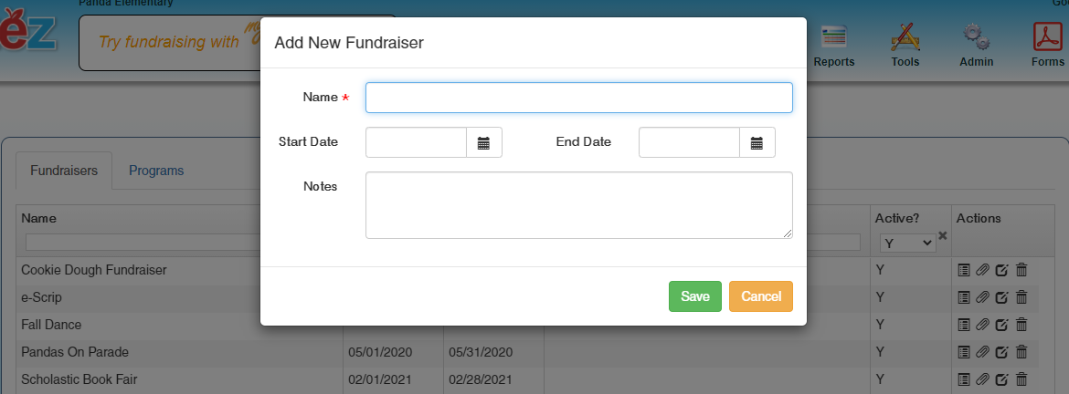 *Note: After you create a fundraiser you will need to ALSO create a Category (income/expense) and associate the Fundraiser/Program to it or you will not be able to write transactions to it.