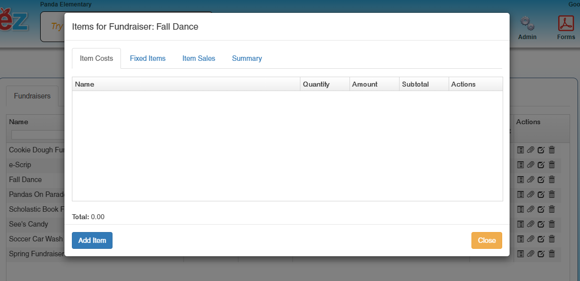 Upon creating a new fundraiser, you may want to add items to sell at the fundraiser. To do this you: