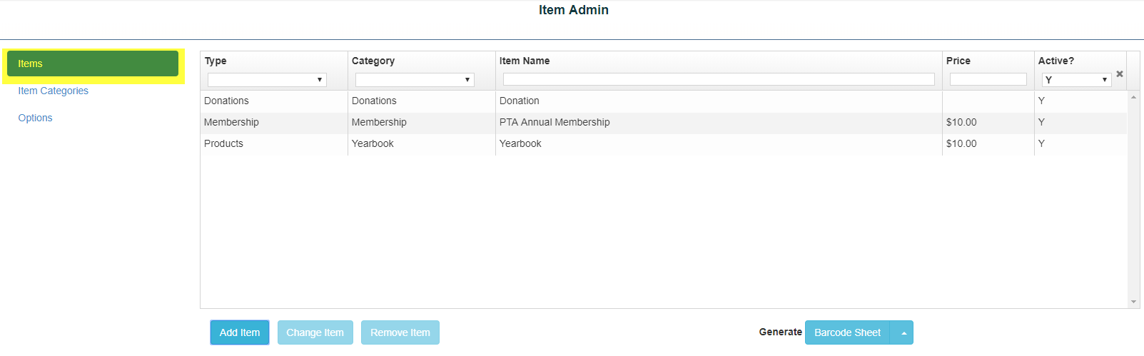 Item Admin: