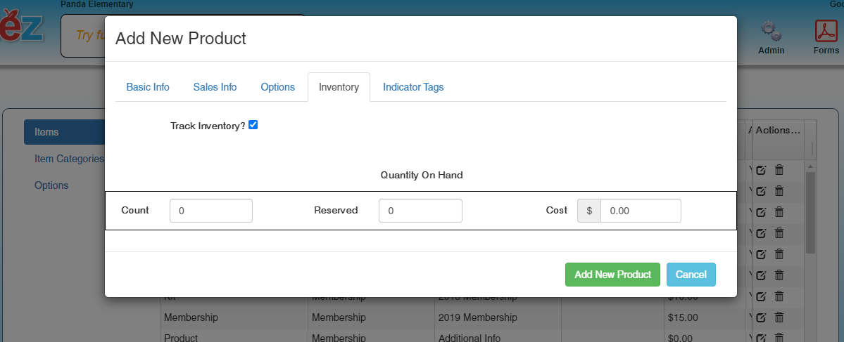 *Note: Membership items are automatically set to 1 and cannot be changed. Do not add a number into the “Grade” box as that will prohibit parents from purchasing items for their students as they do not have a grade associated to them.