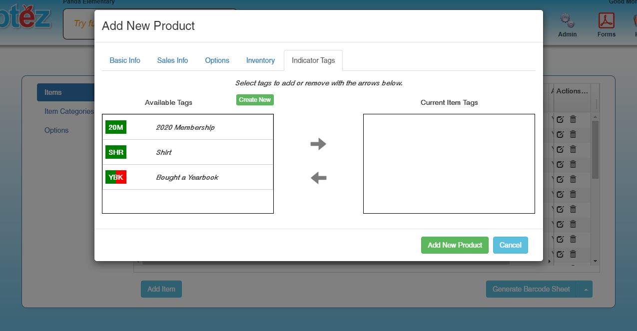 *Note: Indicator Tags must first be setup in Tag Admin before they can be applied to Items