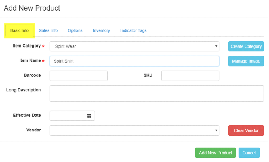 4. Complete the required fields under the "Basic Info" tab