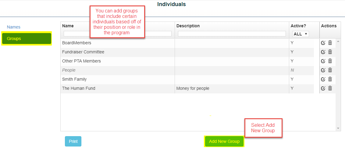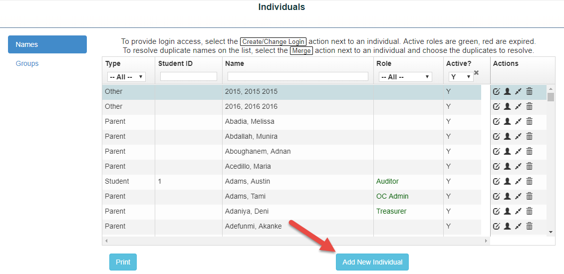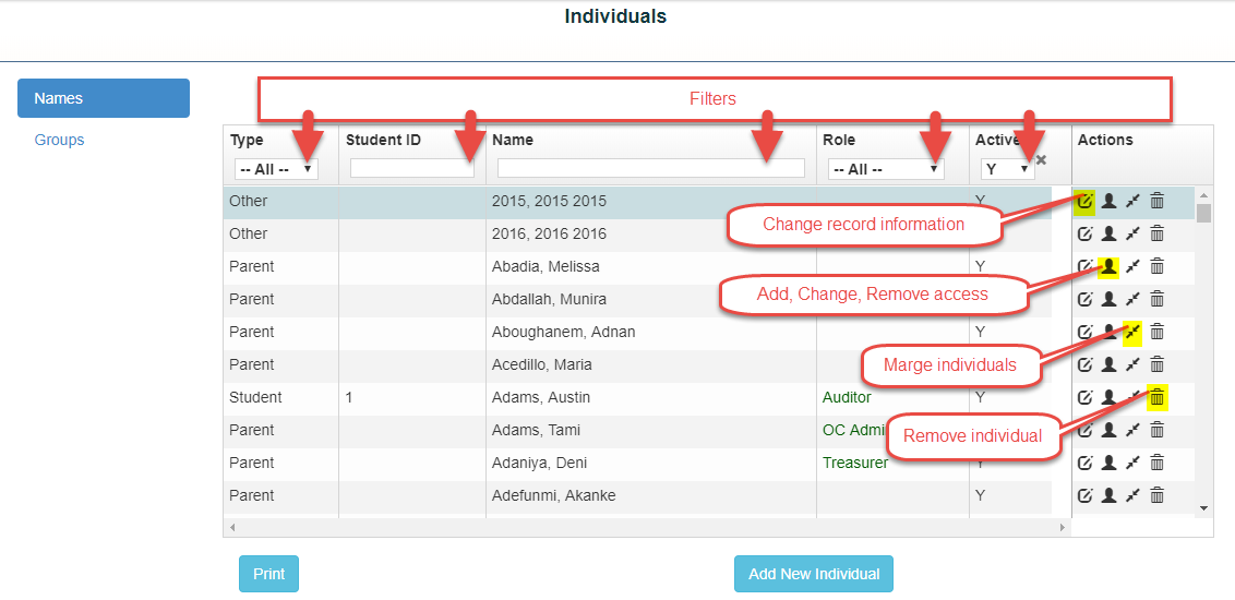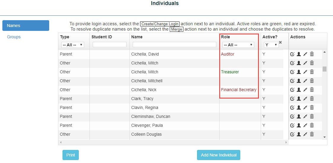 Your individuals screen will show all uses that have access and what role is assigned to them. If the role is Green the user is current, if it is Red the user is expired.