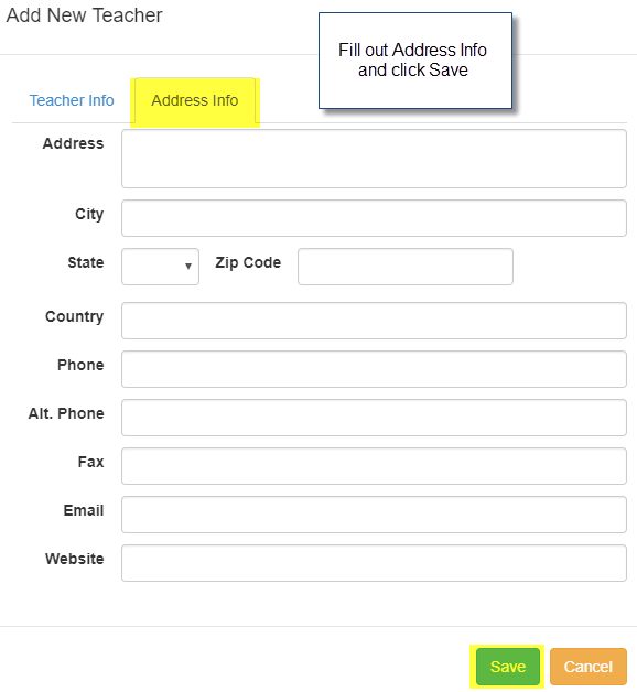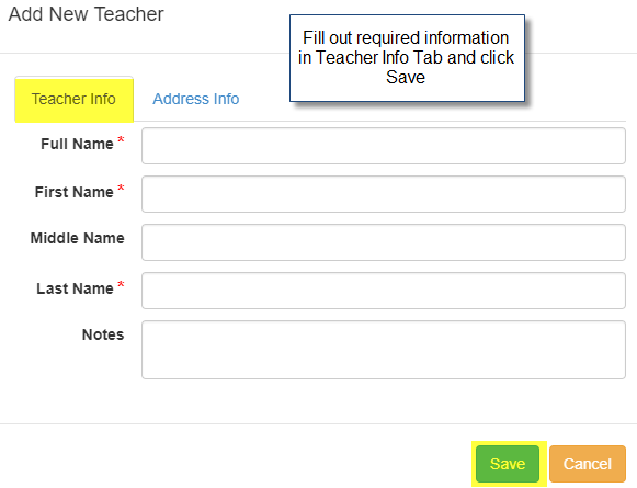 3. Fill out the required information in the first info tab, and any other desired information on the Address Info, or Additional Info pages, respectively.