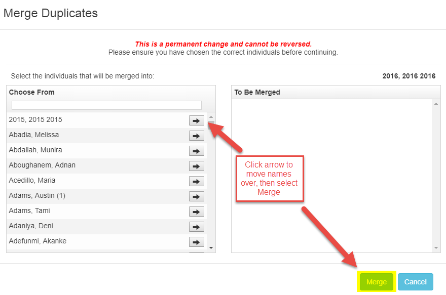 *Note: Merging Individuals CANNOT be undone. Be very careful when Merging Individuals.