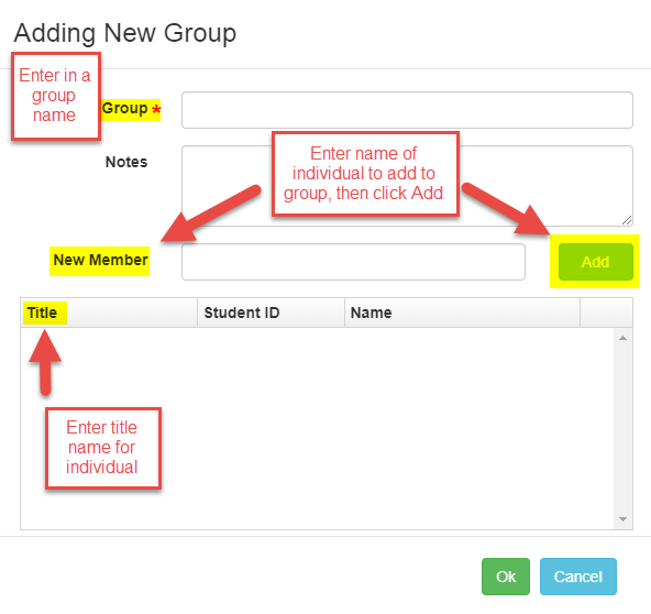 3. Fill out the required information, and use the “New Member” text field to find individuals from your list, and click “Add” once you have found the correct entry.
