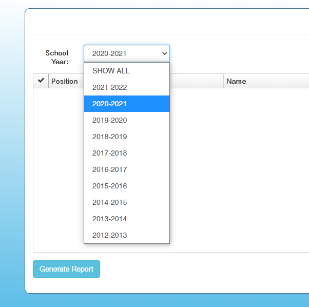 1.While on the page of the School Year you wish to report on, select the “Generate Report” button