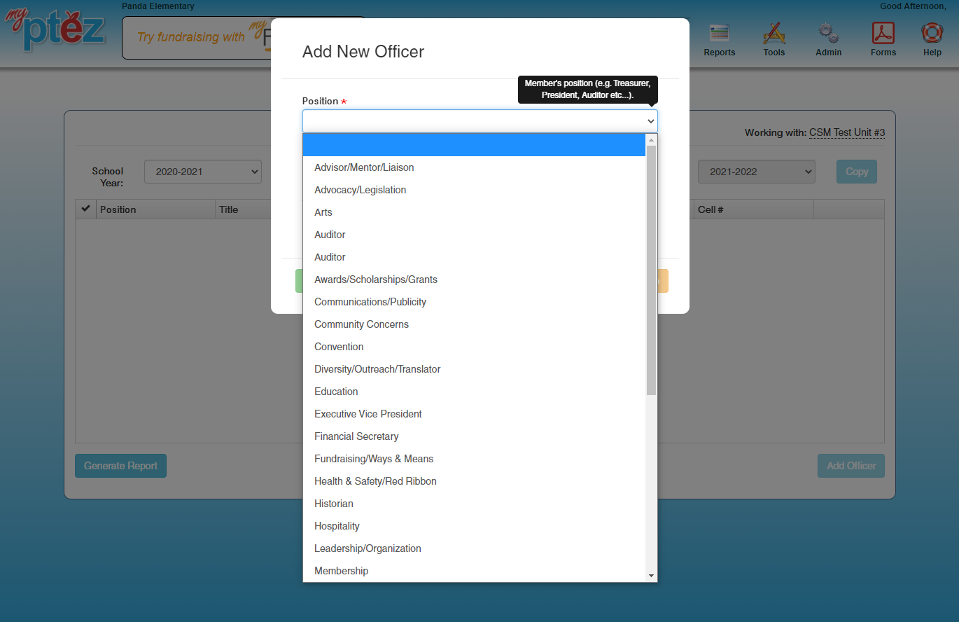 3.Choose one of the preloaded Positions of the Officer you are adding from the drop-down menu.