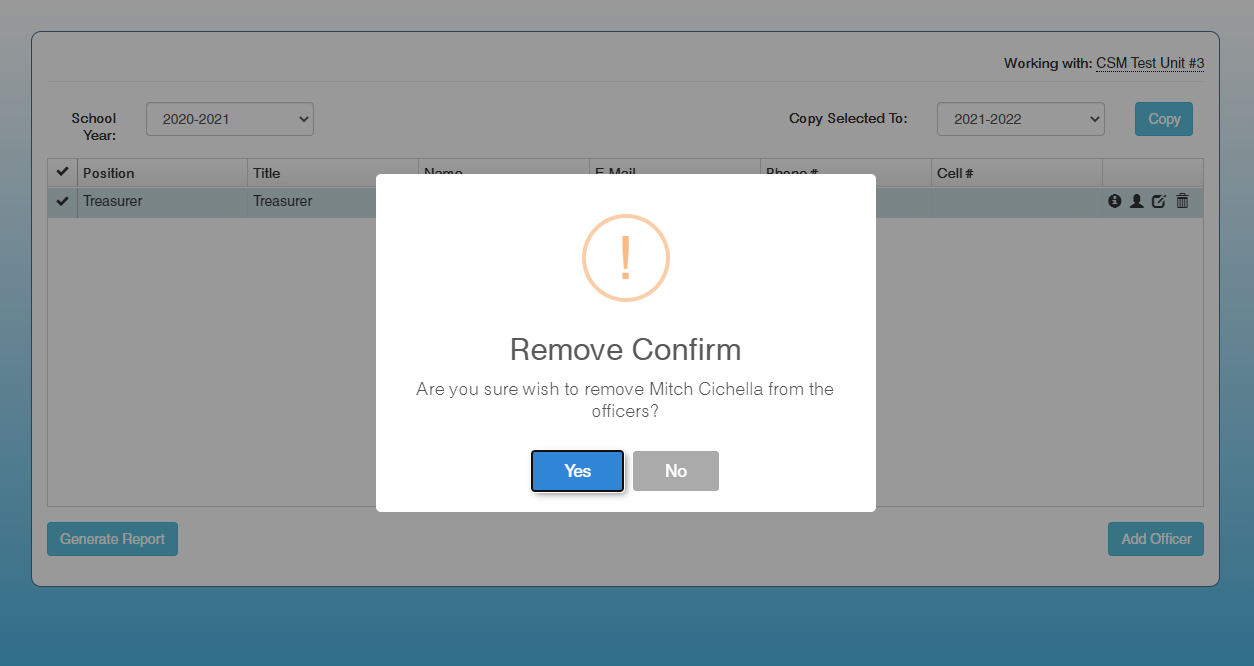 *Note: Removing an Officer will not completely remove the name from the system, it may be selected again for another position or for another year