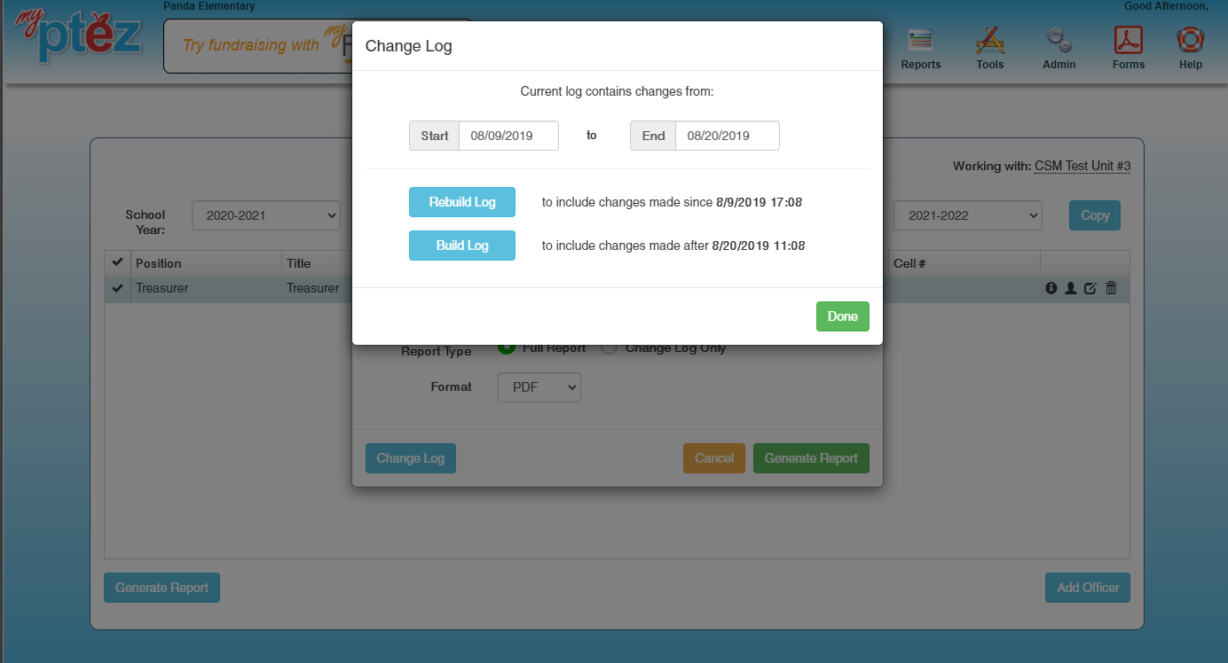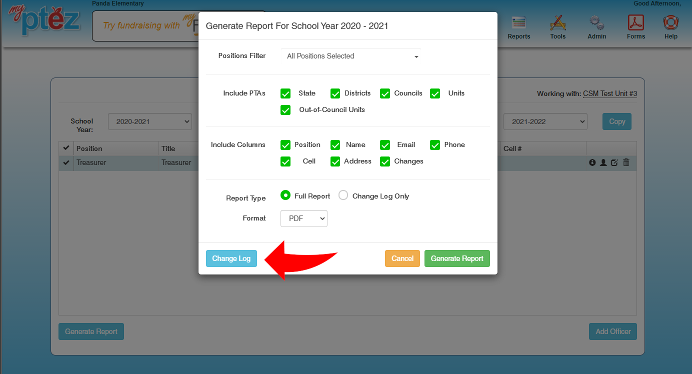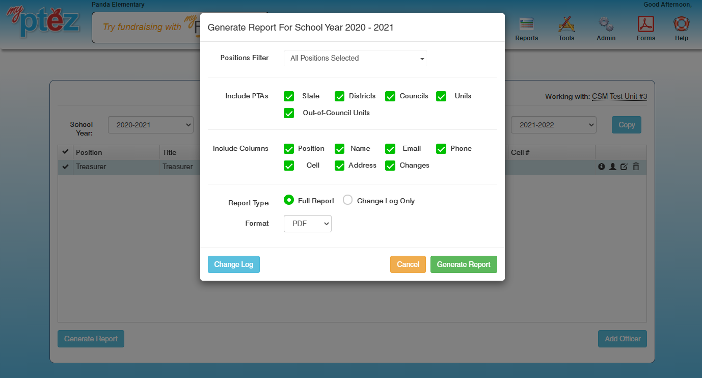 You can generate a Report that lists all of your Officers by selecting “Generate Report”. You can select what information you would like to report on, or run a “Change Log” report.