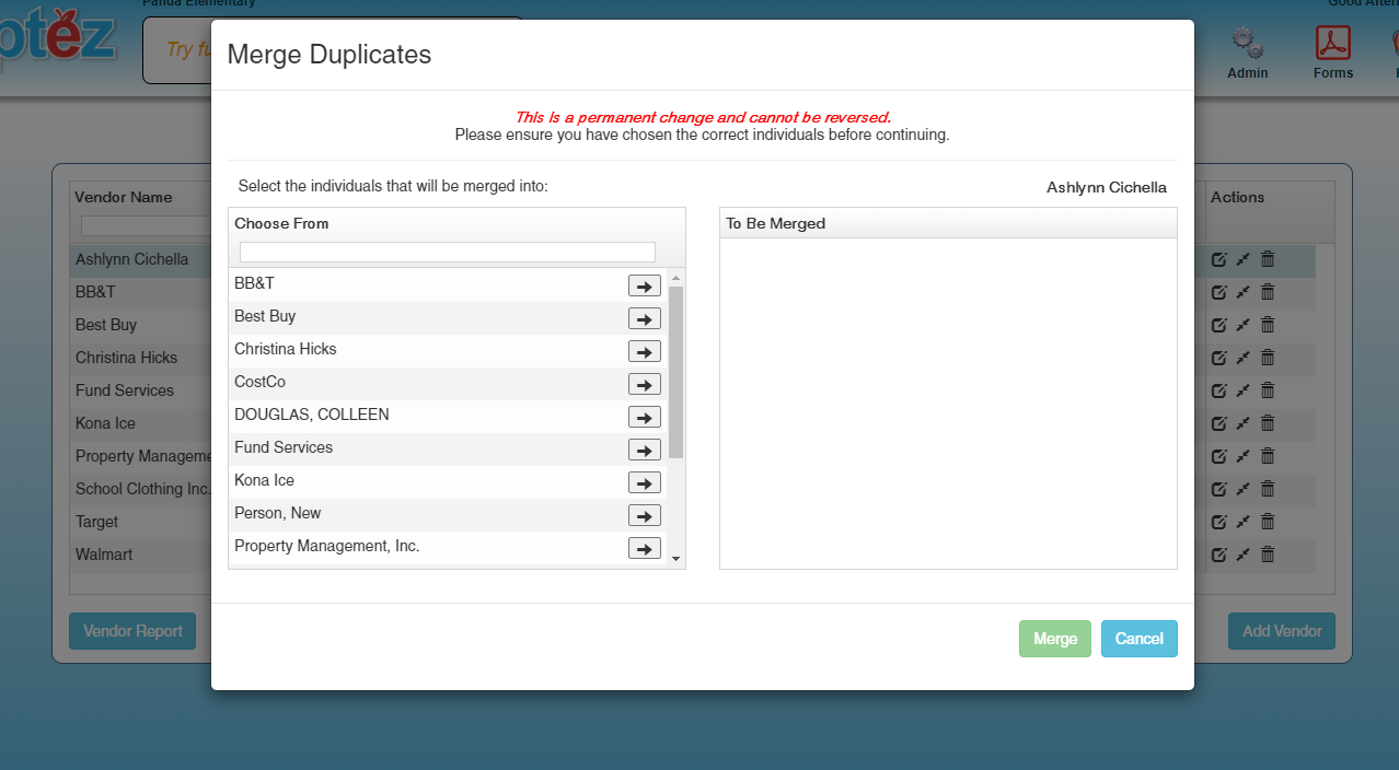 *Note: Use this feature carefully as Vendors cannot be un-merged!