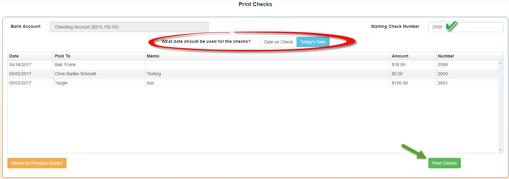4. Click “print checks”