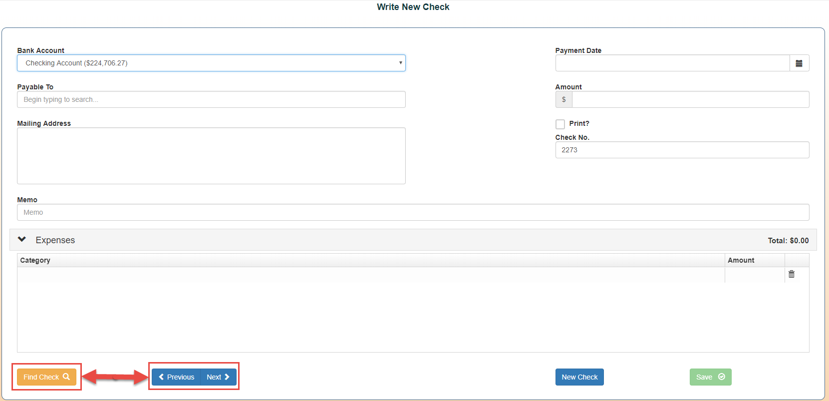1. Go to Check > Write New Checks