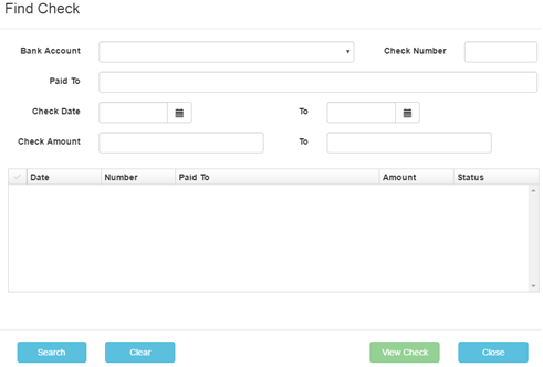 2.Select the bank account that the check was charged to, or check number, etc. to access check.