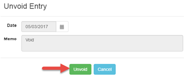 After a check is voided, it is possible to change the void date on the check by Unvoiding the check and revoiding it with the correct date. Follow the steps above and select the "Unvoid" Button.